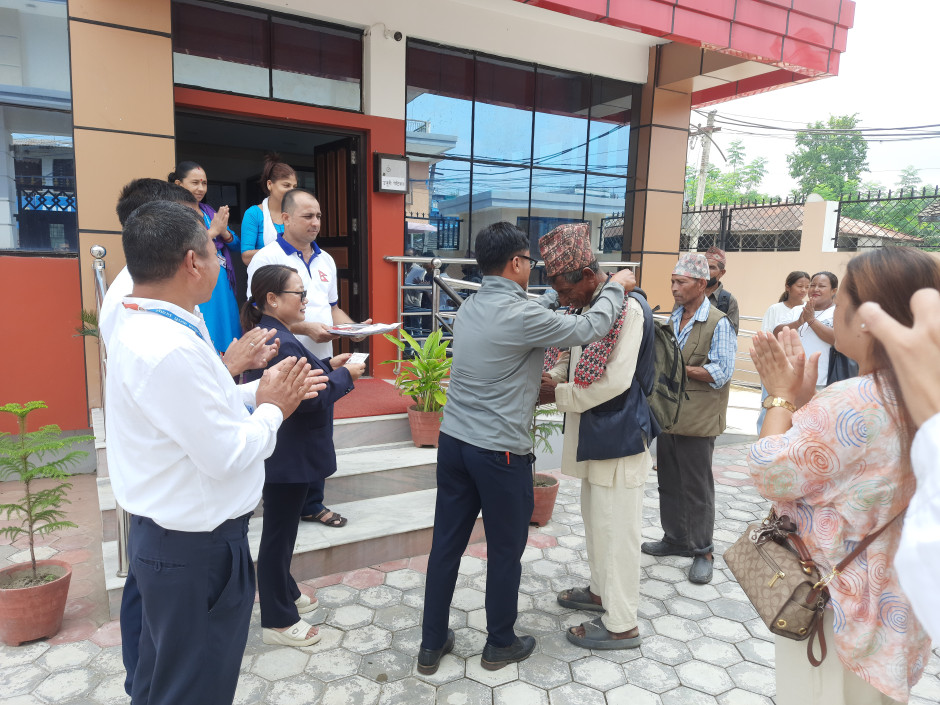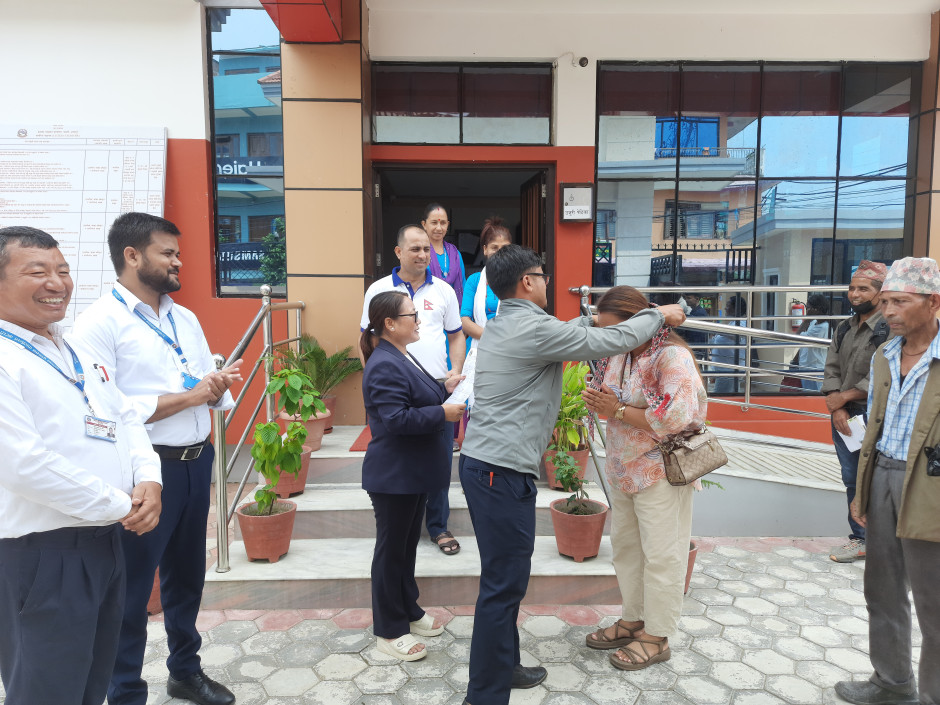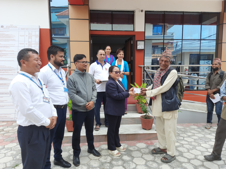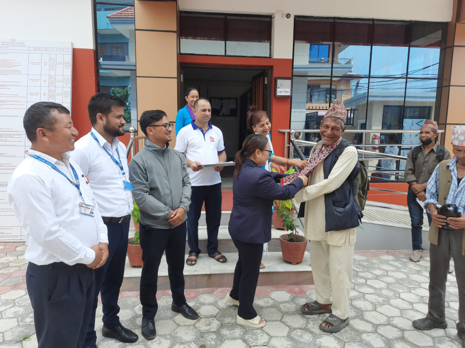 मिति २०८२-५-२२ निजामती सेवा दिवसको अवसरमा यस कार्यालयबाट सेवा प्राप्त गर्नुहुने पहिलो सेवाग्राहीलाई सम्मान गरियो ।