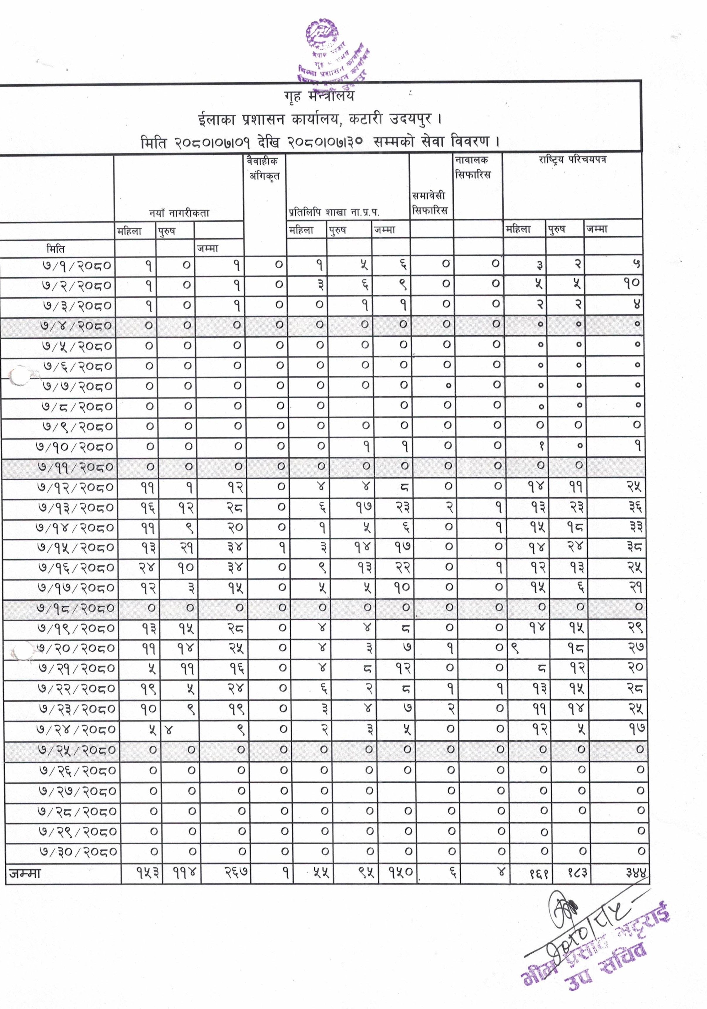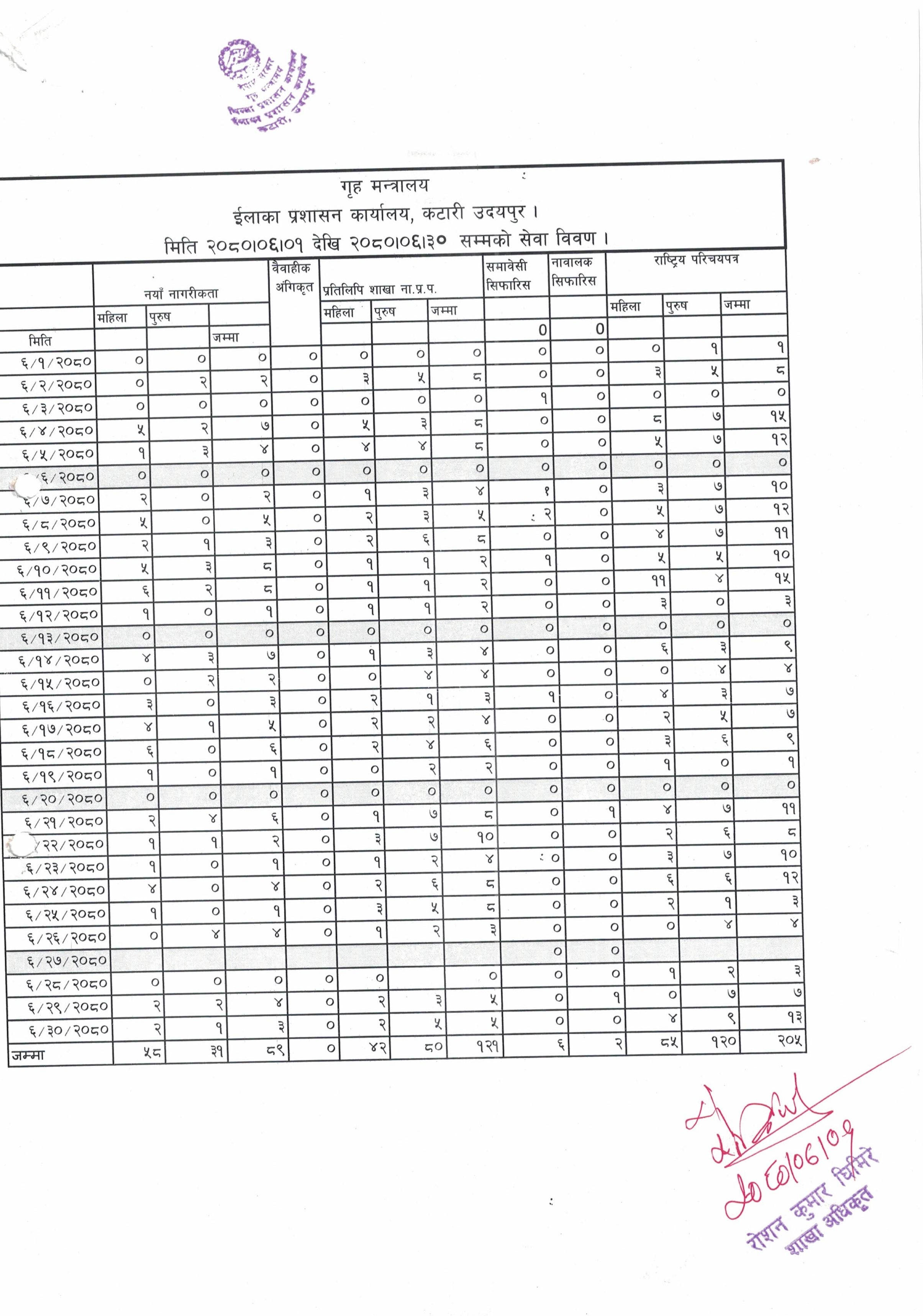 २०८० साल भदौ महिनाको मासिक कार्य प्रगति विवरण