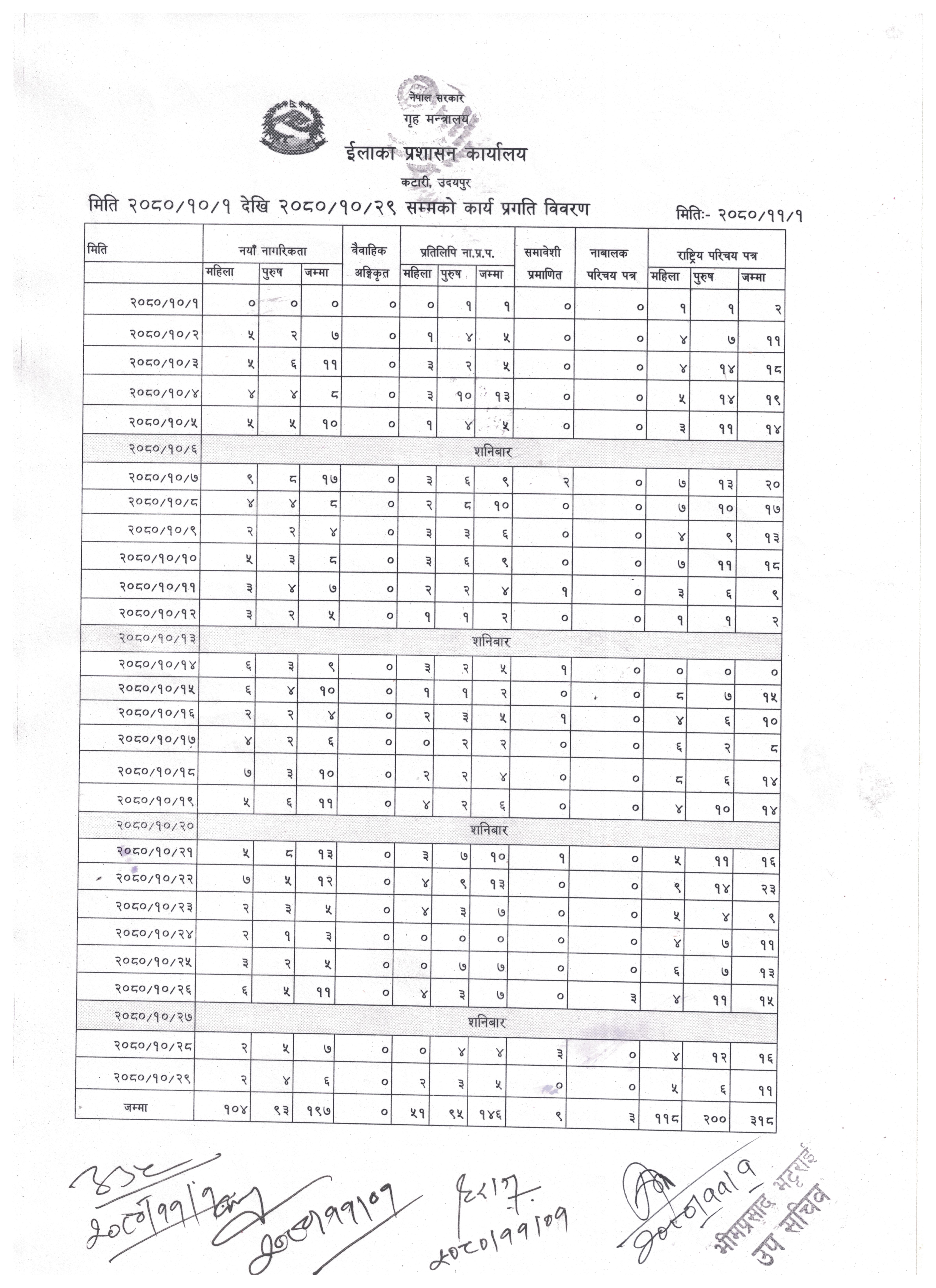 २०८० साल असोज महिनाको मासिक कार्य प्रगति विवरण