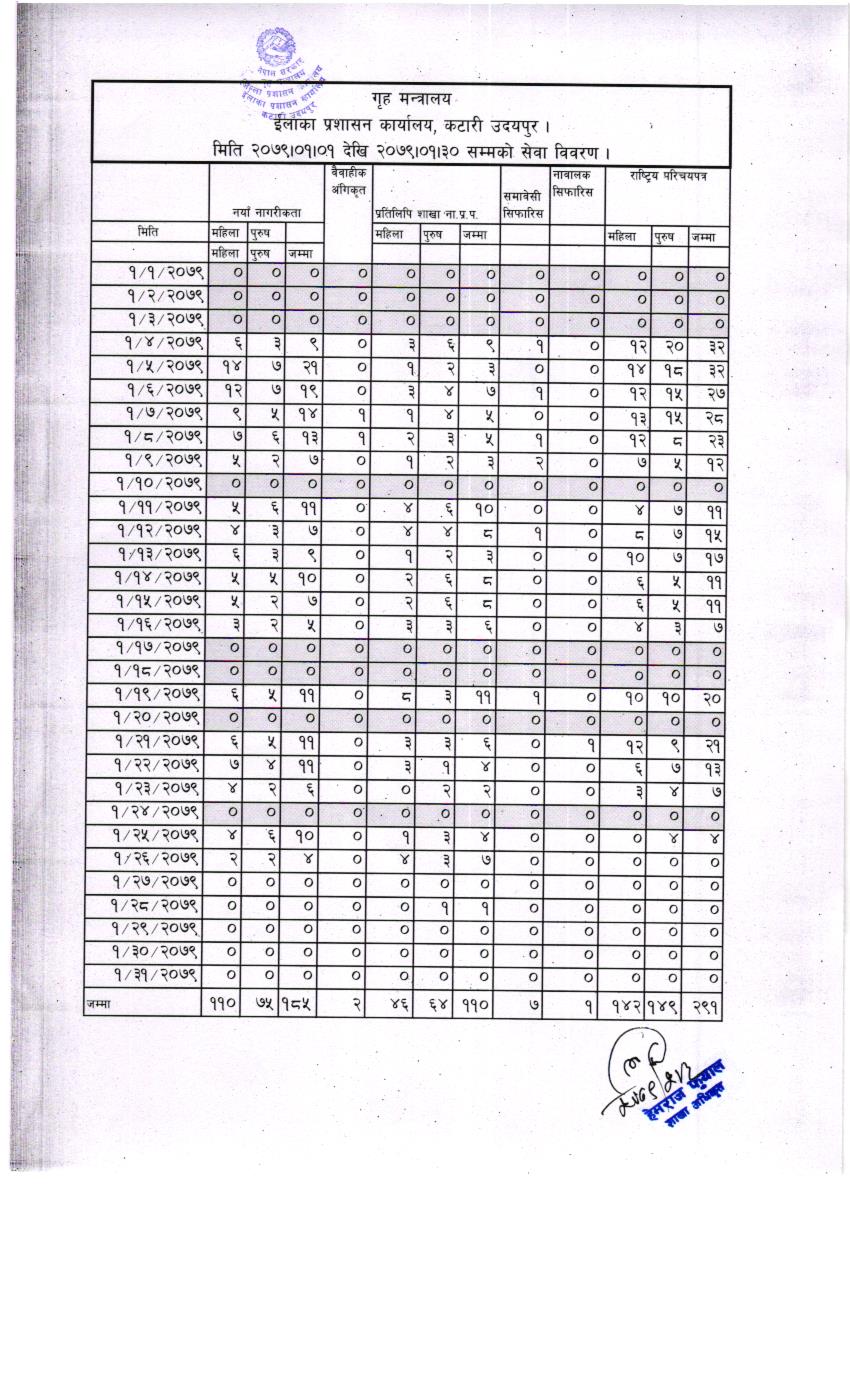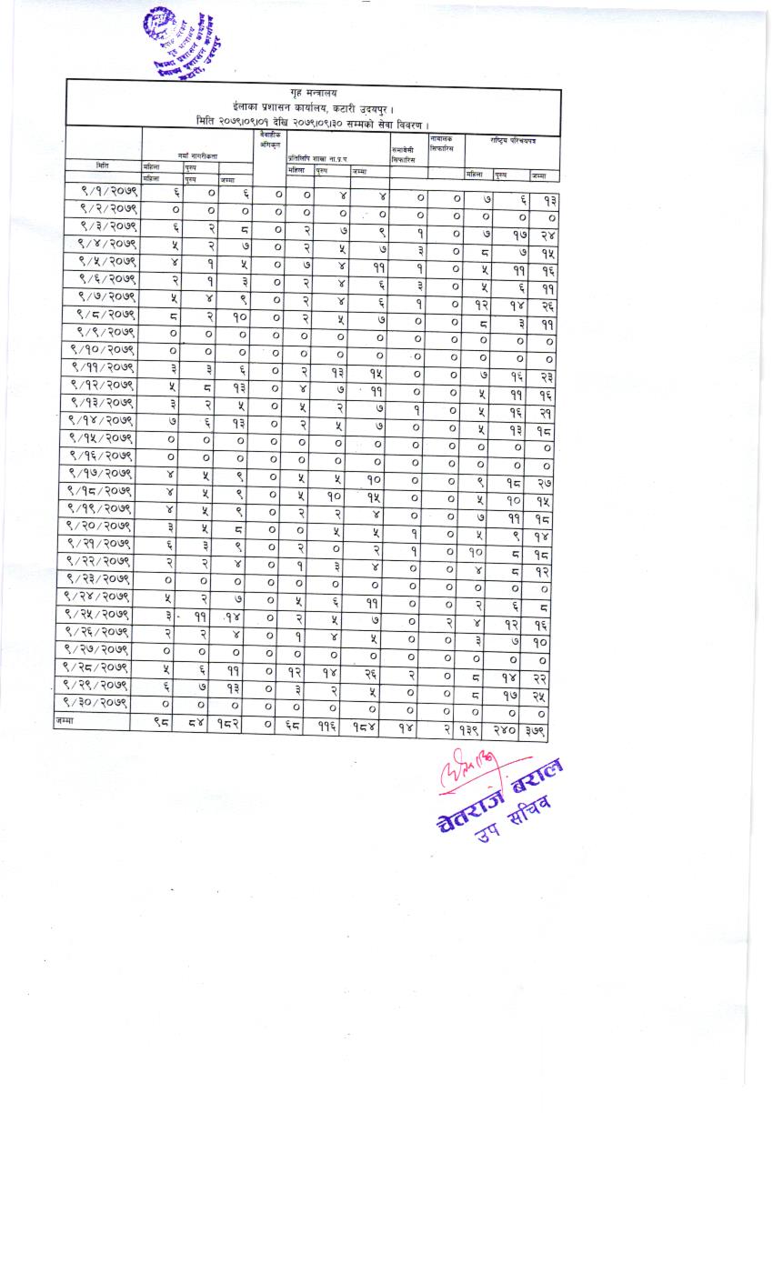 मिति २०७९।०९। ०१ देखि मिति २०७९।०९।३० सम्मको मास्के प्रतिवेदन ।