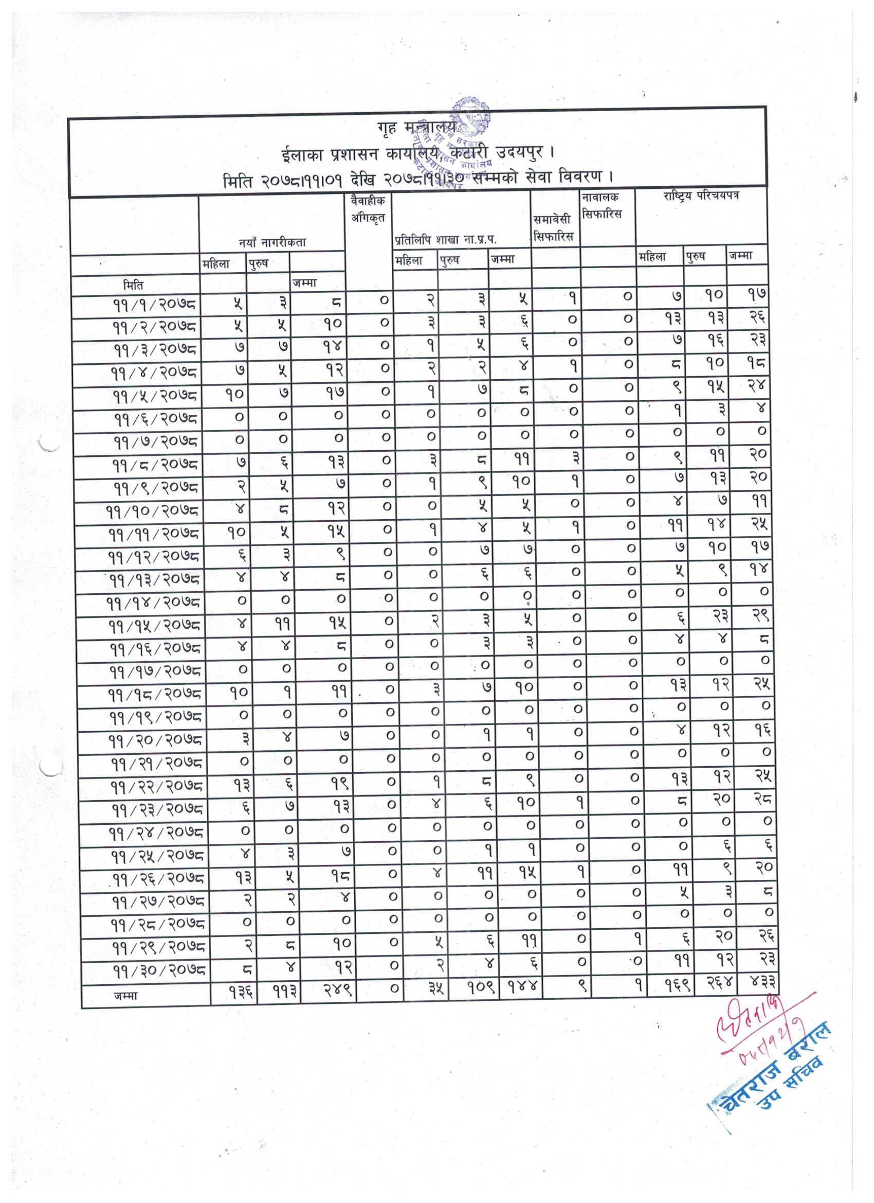 २०७८।०६।२५ सम्मको (M.R.P.) बनेर आएको जानकारी ।