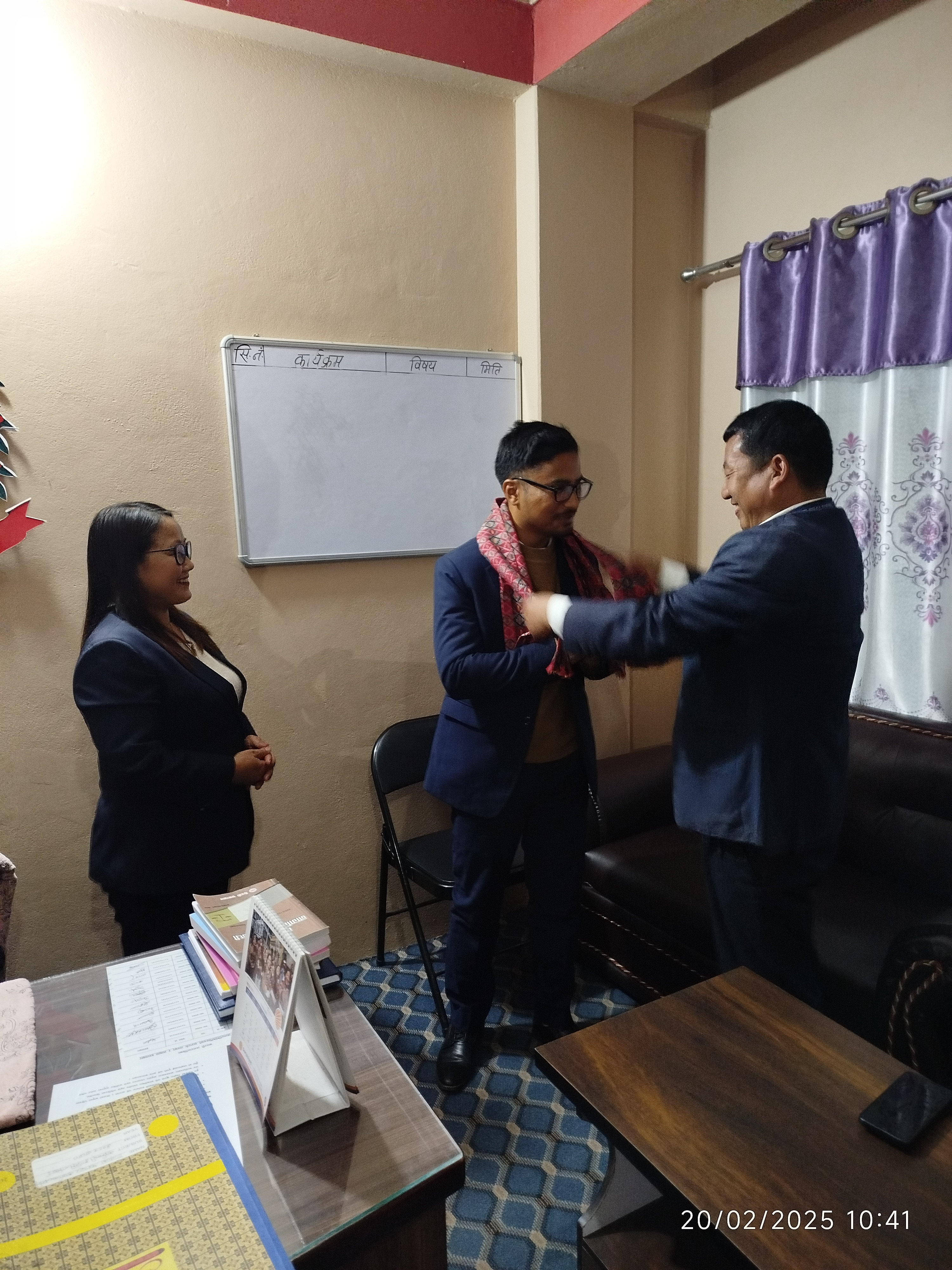मिति २०८२-८-१४ यस कार्यालयमा सरुवा भई आउनुभएका कार्यालय प्रमुख उपसचिव श्री लोकमान श्रेष्ठज्यूको स्वागत तथा पदभार ग्रहण कार्यक्रम