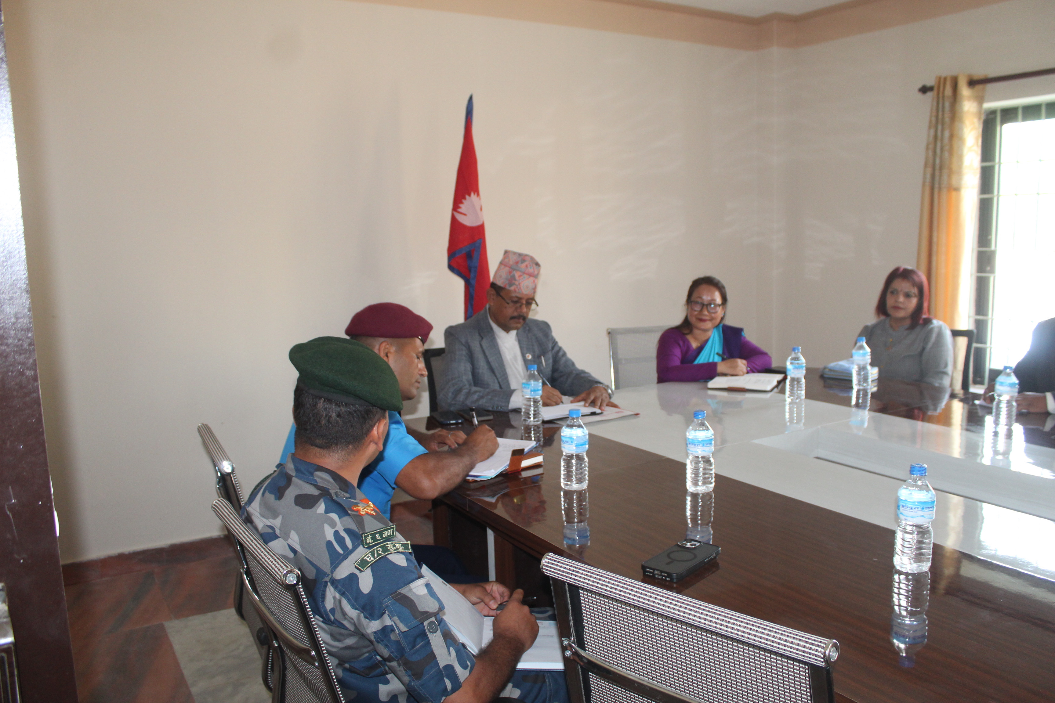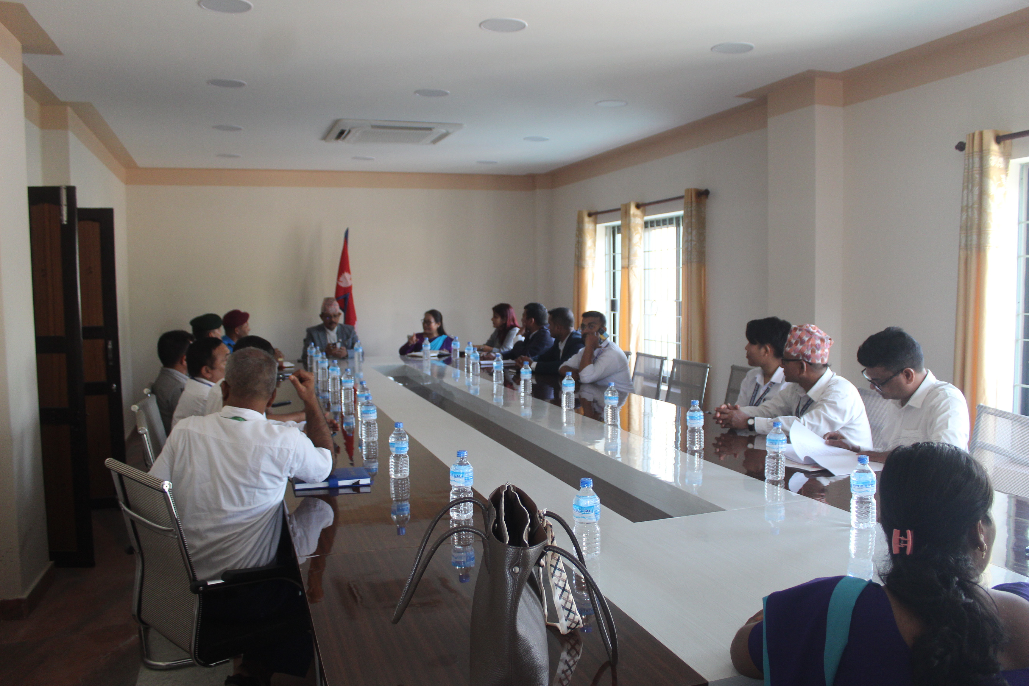 मिति २०८२-६-७ प्रमुख जिल्ला अधिकारी श्री प्रेम प्रसाद लुईंटेलज्यूको अध्यक्षतामा बसेको कार्यालय प्रमुख बैठक
