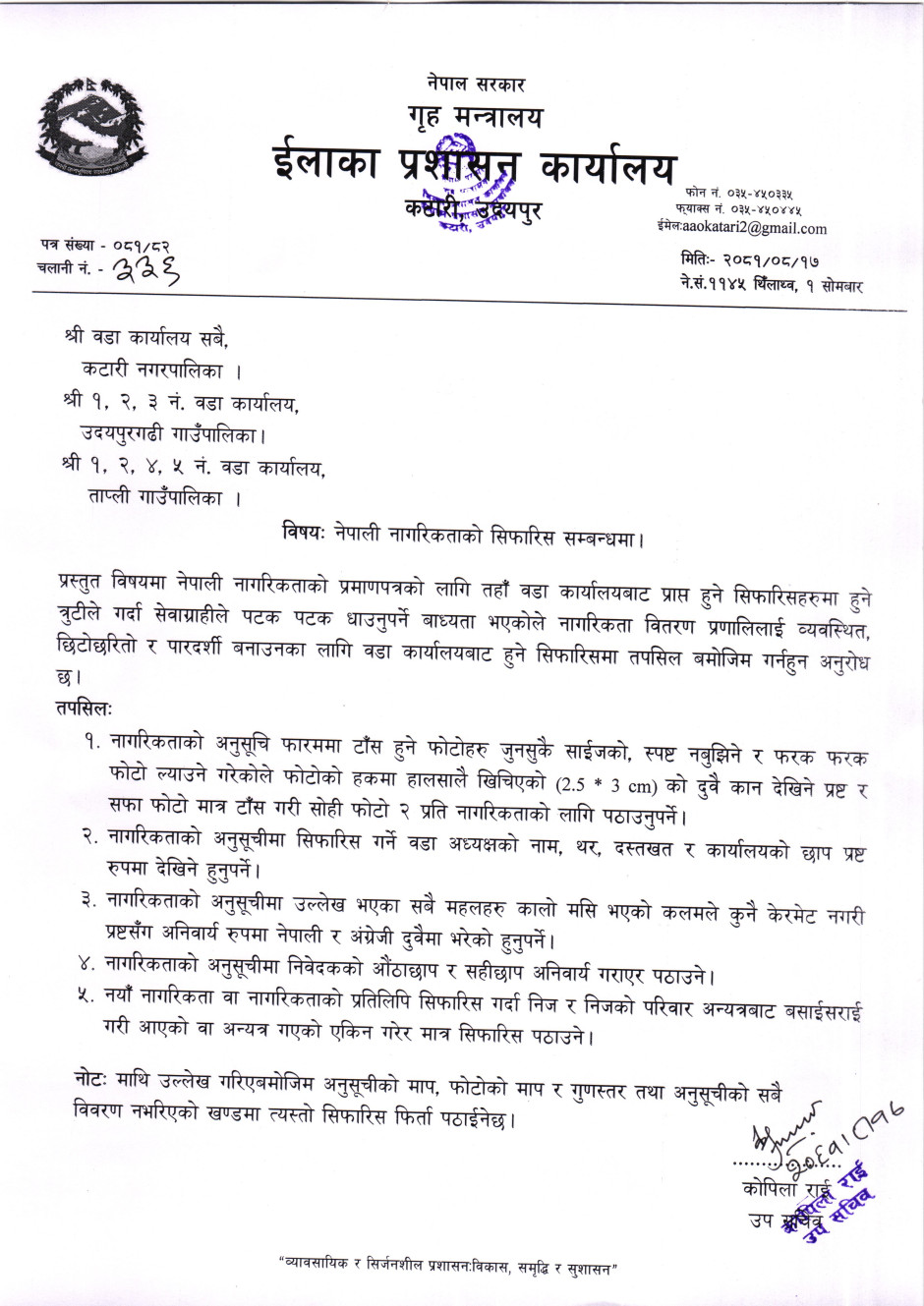 नागरिकता सिफारिस सम्बन्धमा ।