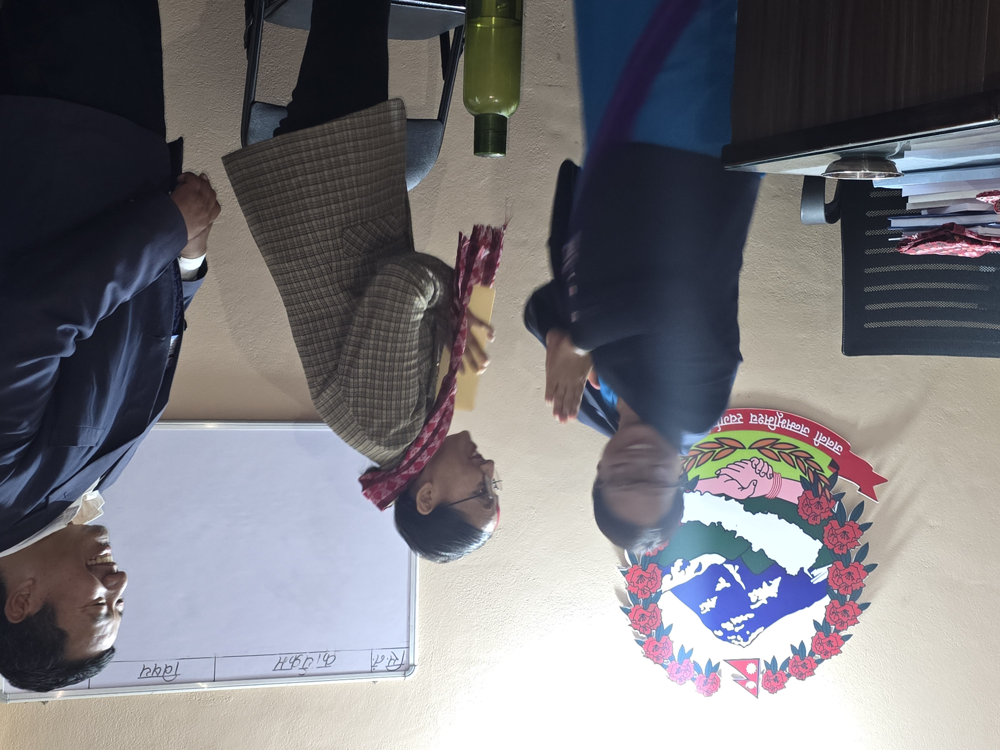 मिति २०८२-६-७ प्रमुख जिल्ला अधिकारी श्री प्रेम प्रसाद लुईंटेलज्यूको अध्यक्षतामा बसेको कार्यालय प्रमुख बैठक