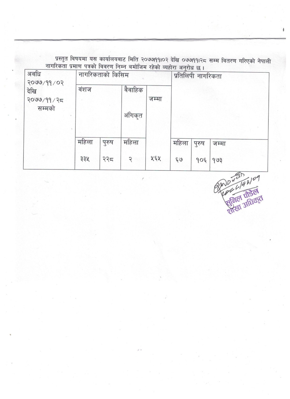 २०७७ फागुन महिनामा वितरण भएकाे नागरिकताकाे विवरण