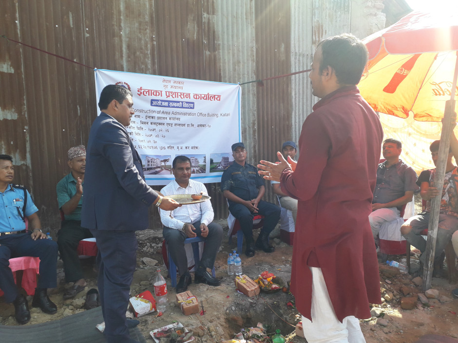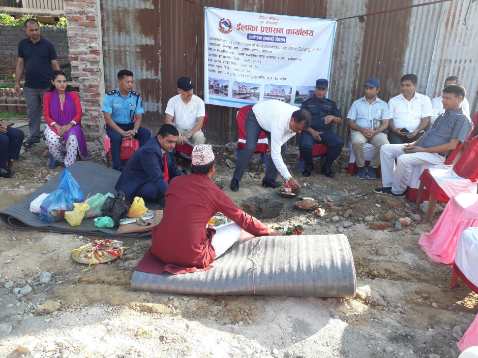 इलाका प्रशासन कार्यालय कटारीकाे नयाँ भवनकाे शिलन्यास २०७९।०३।३२