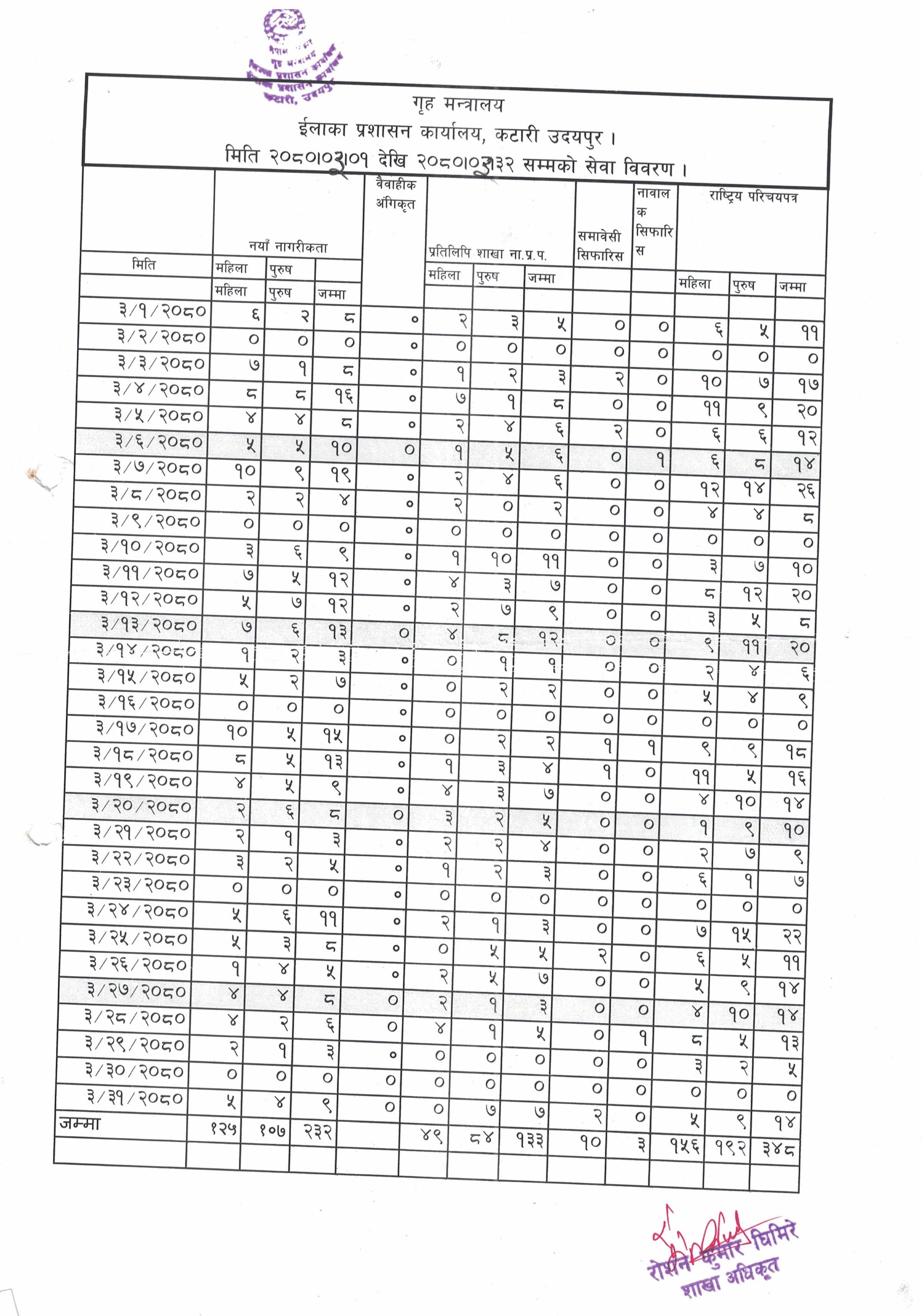 २०८२ साल असोज मसान्तको मासिक कार्य विवरण