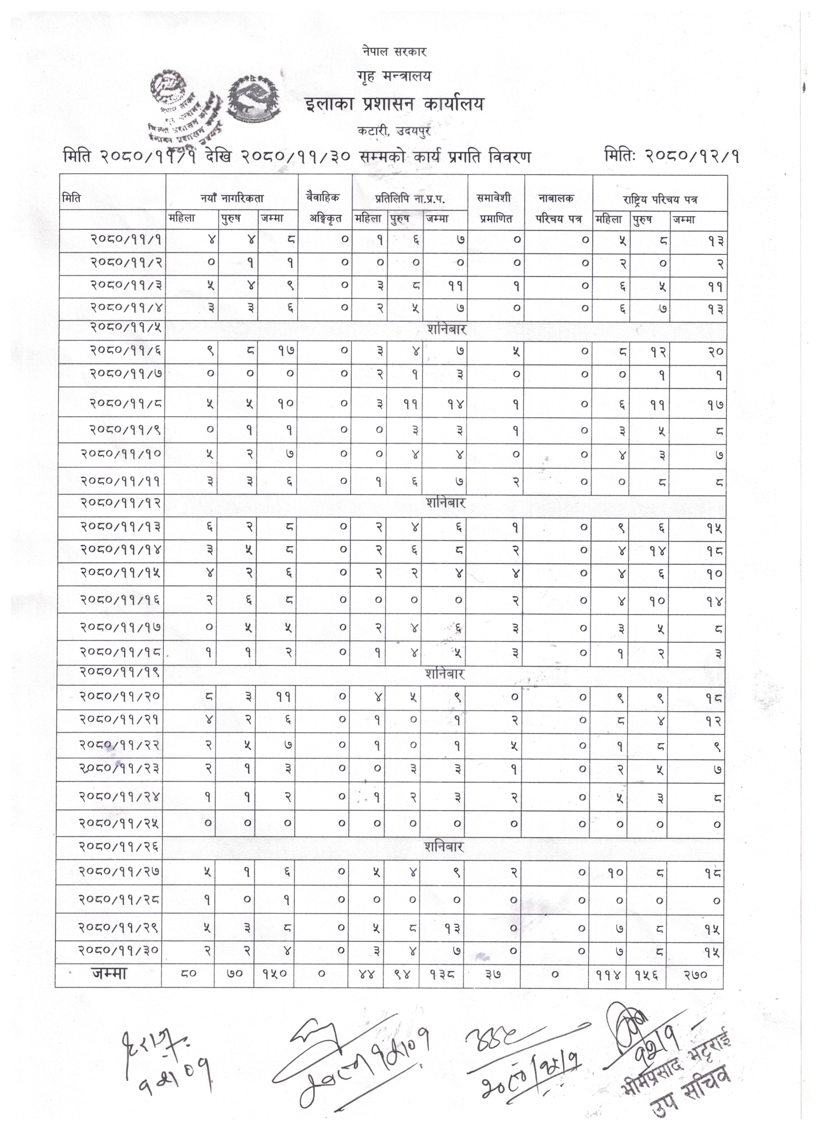 २०८२ साल कार्तिक मसान्तको मासिक कार्य विवरण