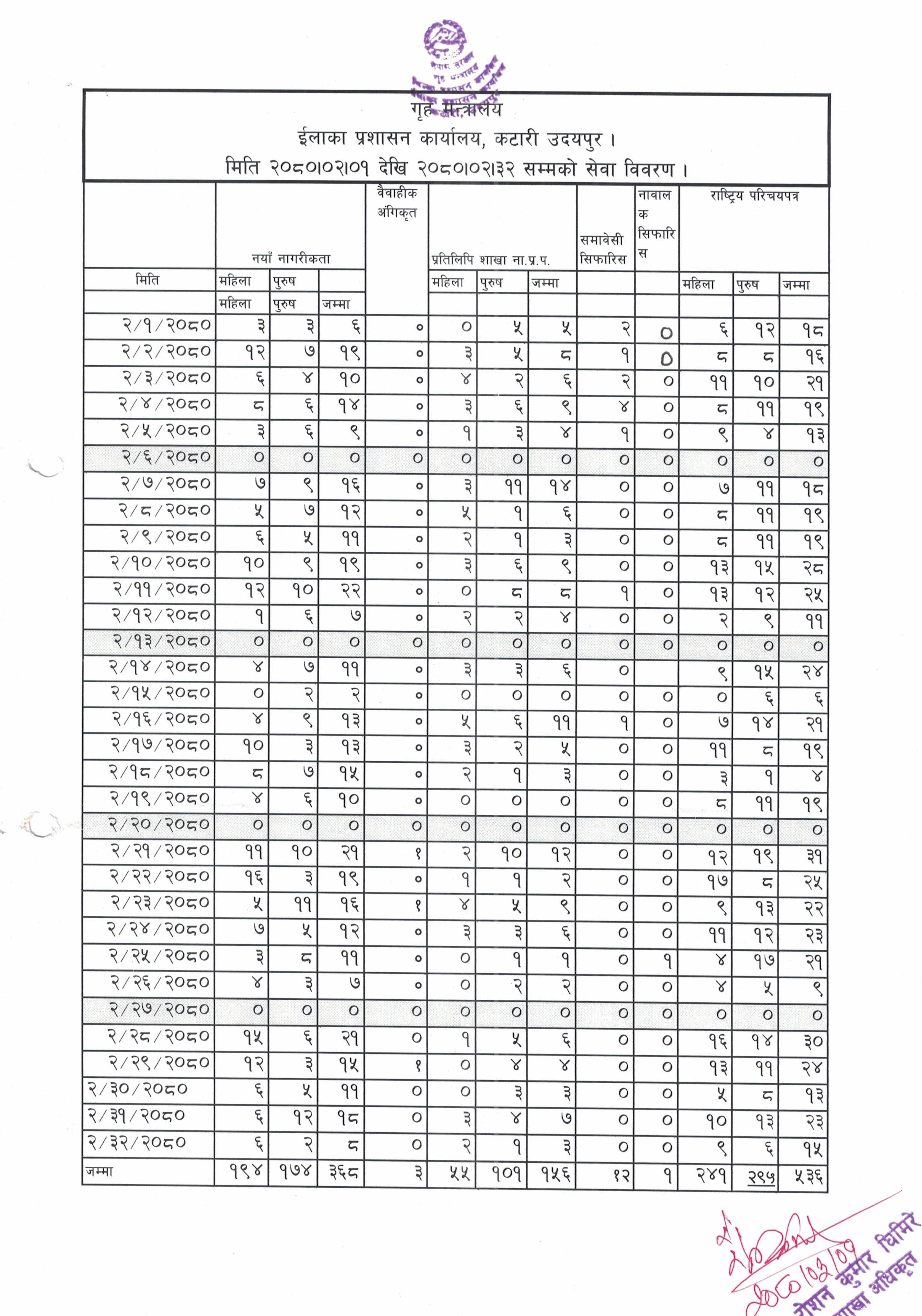 २०८२ साल असोज मसान्तको मासिक कार्य विवरण
