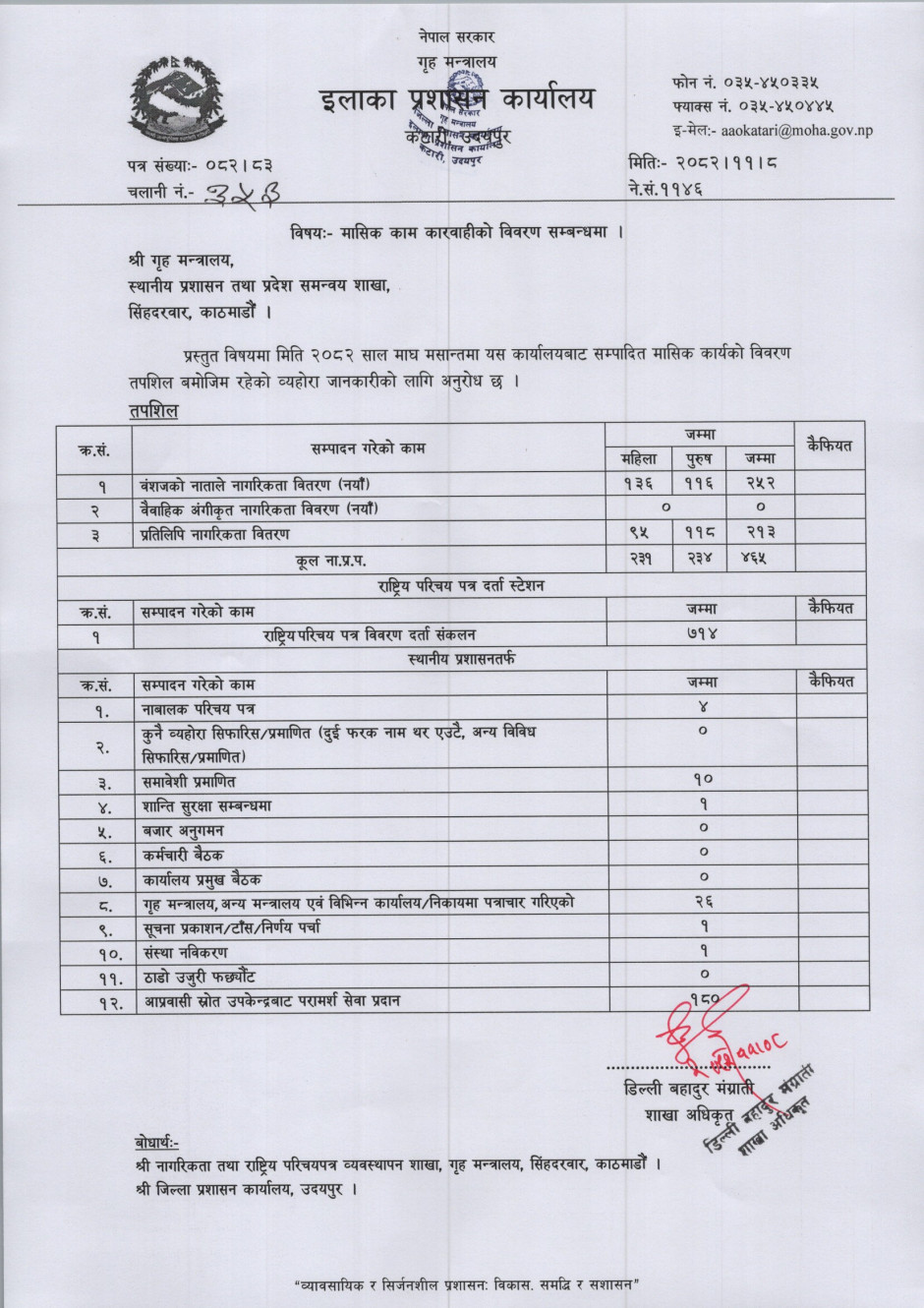 २०८२ साल माघ मसान्तको मासिक कार्य विवरण