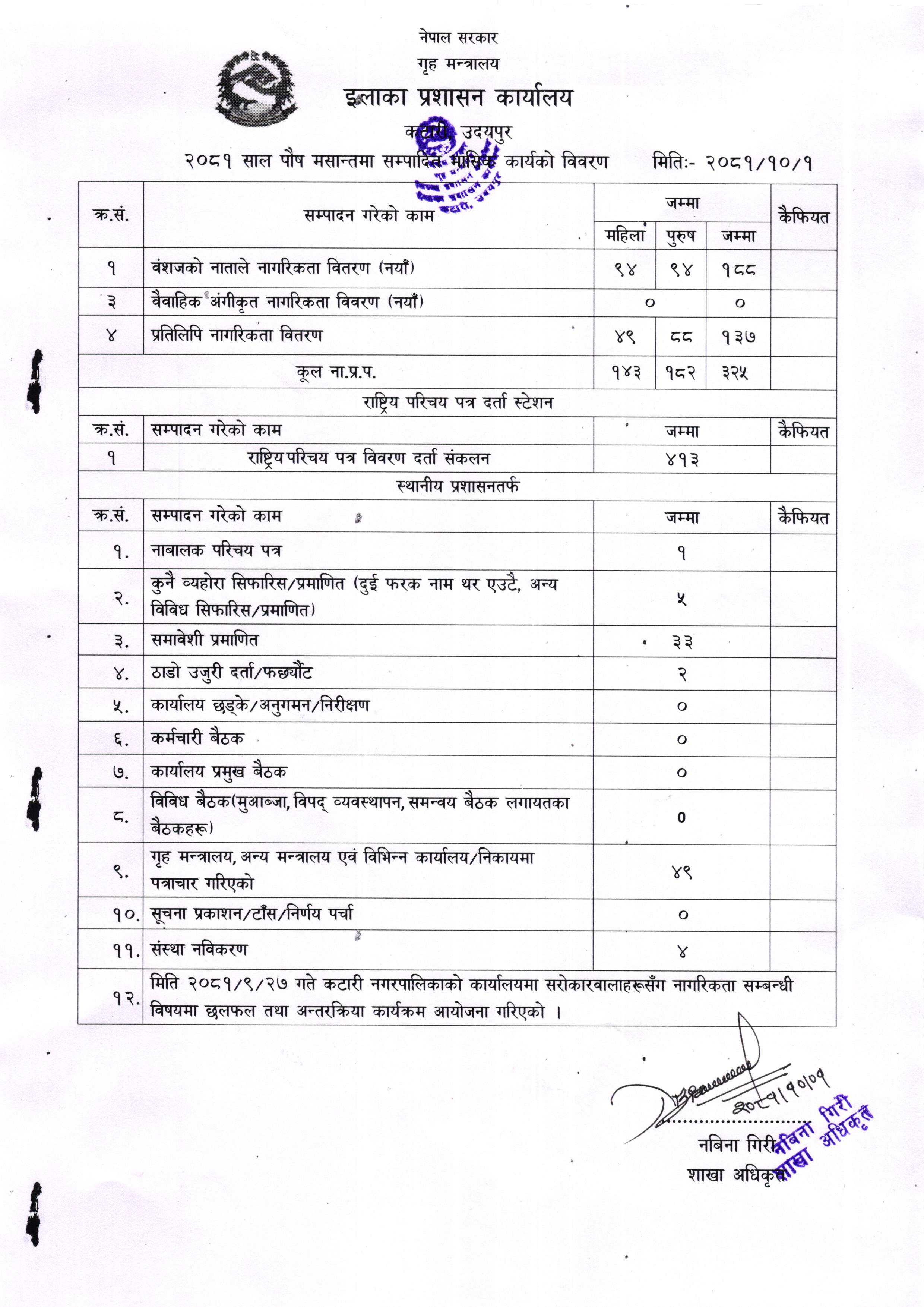 २०८१ साल पौष मसान्तको मासिक कार्य विवरण